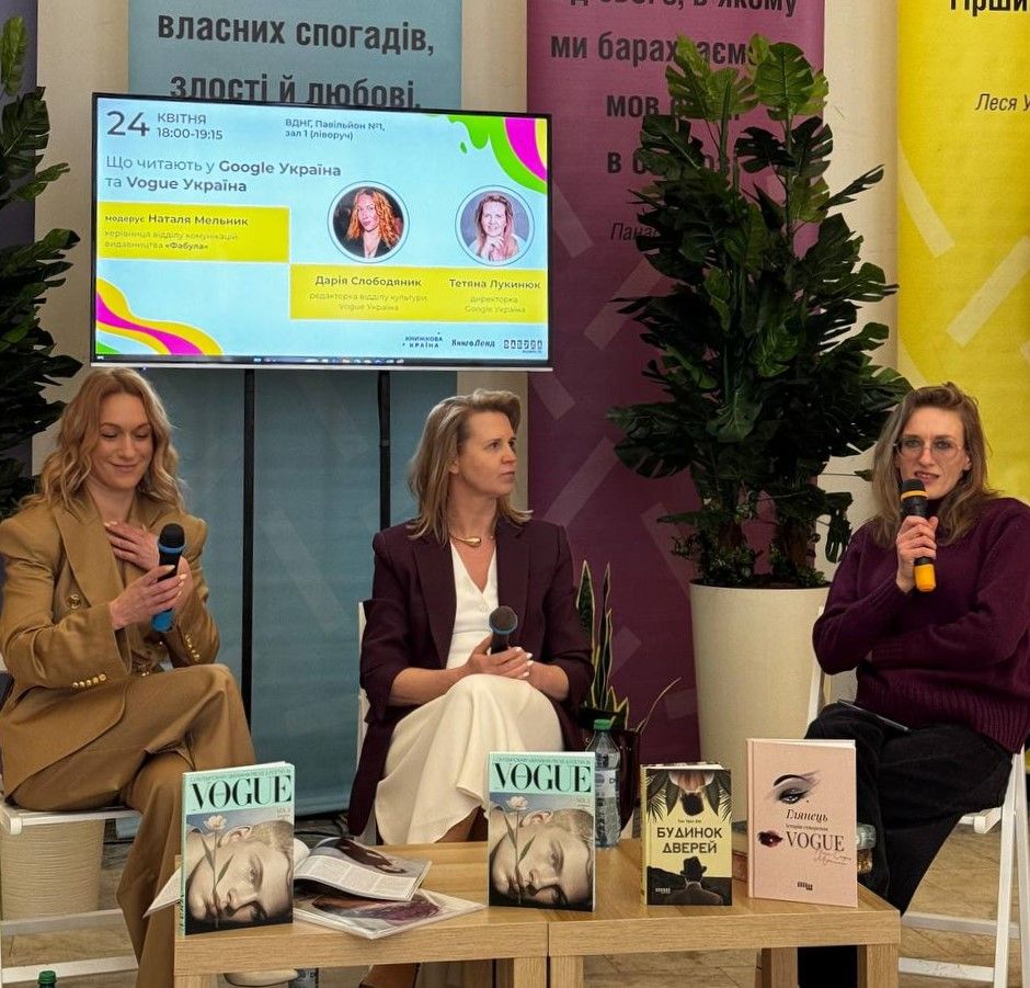 27 квітня 2026 р.24 квітня на фестивалі Книжкова Країна відбулась подія "Що читають у Google Україна і Vogue Україна" за участі Тетяни Лукинюк — директорки Google Україна та Дарії Слободяник — редакторки відділу культури Vogue Україна. Модерувала зустріч Наталя Мельник - керівниця відділу комунікацій видавництва "Фабула".