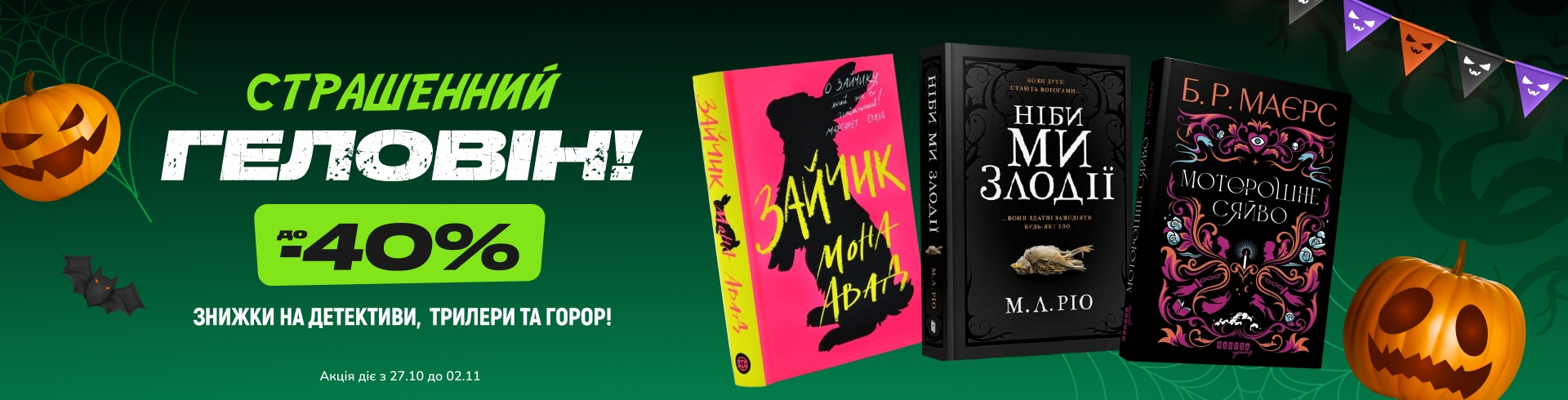 Страшенний Геловін! До -40% на детективи, трилери та горор!