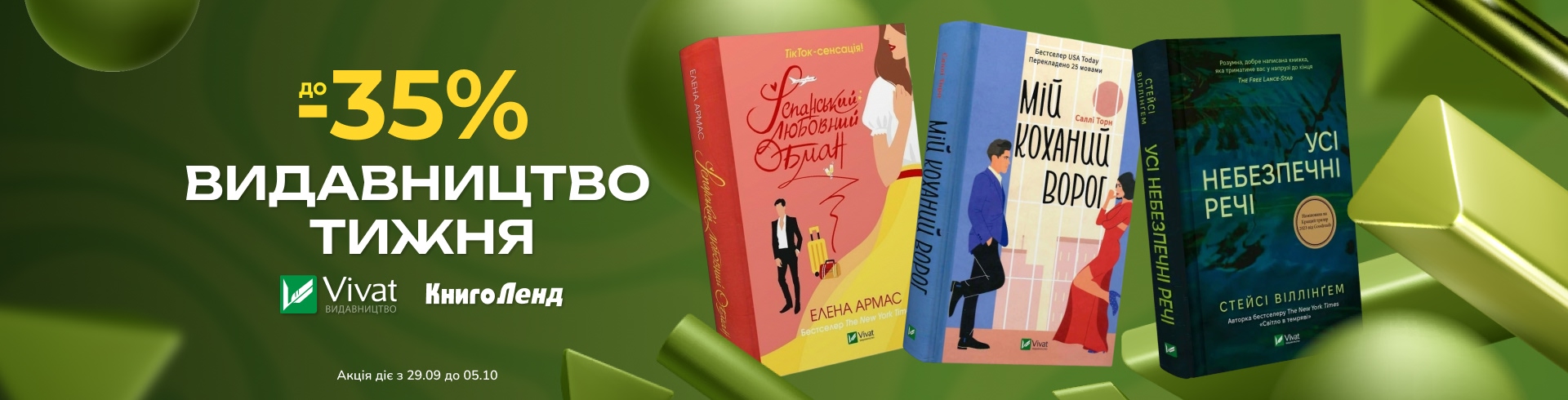 З 29.09 до 05.10 запрошуємо вас скористатися чудовою нагодою придбати обрані книжки від видавництва Vivat зі знижкою до -35%!